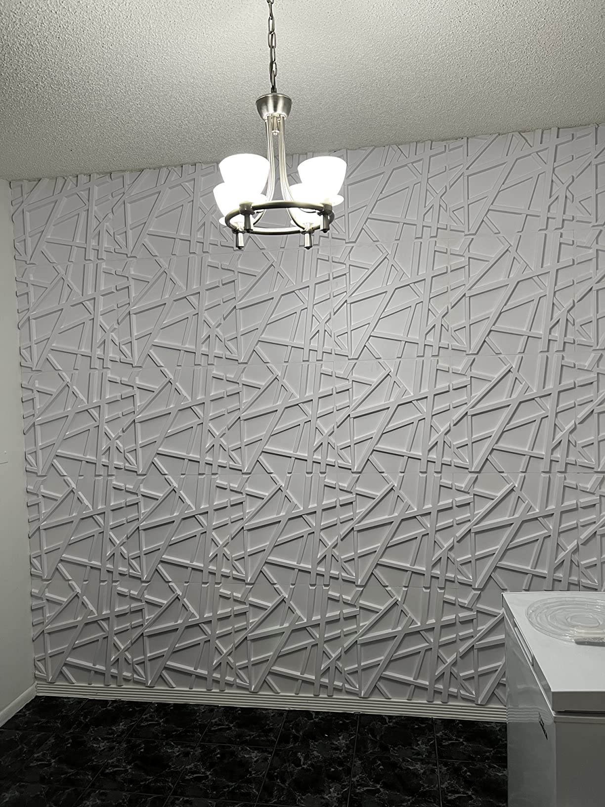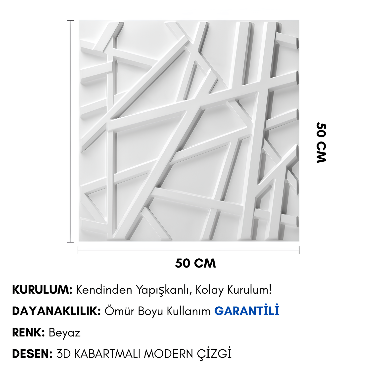 3D Duvar Paneli Çizgi Model Pvc Kabartmalı Kendinden Yapışkanlı Beyaz Renk – 50x50cm için 3 değerlendirme